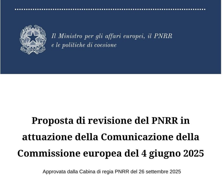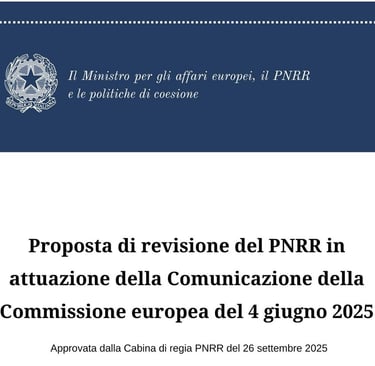 Il 26 settembre 2025 la Cabina di regia ha approvato la proposta di revisione del PNRR, che ora passerà al Parlamento e poi alla Commissione UE.